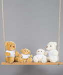Bear in a t-shirt - plush cream and mid brown coloured bears dressed in a removable white cotton T-shirt. Ideal for decoration. Remove all hang tags and their fasteners before giving these items to a child. Suitable for all ages 0+. Complies with EN71 European Toy Safety Regulations.
