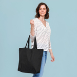 Premium, durable, cotton tote bag with a large capacity. Can be carried by hand or over the shoulder.